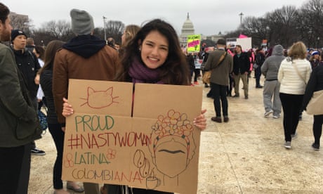 “Minority president”, “Women roar” and “I’m afraid” were among the signs waved by a crowd, made up mostly of women but also comprising some men, that far exceeded turnout for Friday’s inauguration. Many wore pink handknit “pussy hats” – a rebuke to the billionaire businessman once caught on tape boasting: “Grab them by the pussy.”