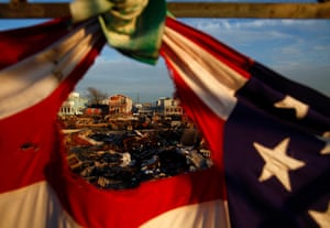 The High Rock neighborhood in the eastern part of Grand Bahama Island after Hurricane Dorian caused huge damage in 2019. Photograph: Angel Valentin/Guardian Bottom Puerto Ricans in San Lorenzo in the river after Hurricane Maria destroyed the town’s bridge, October 2017. Photograph: Alvin Báez/Reuters