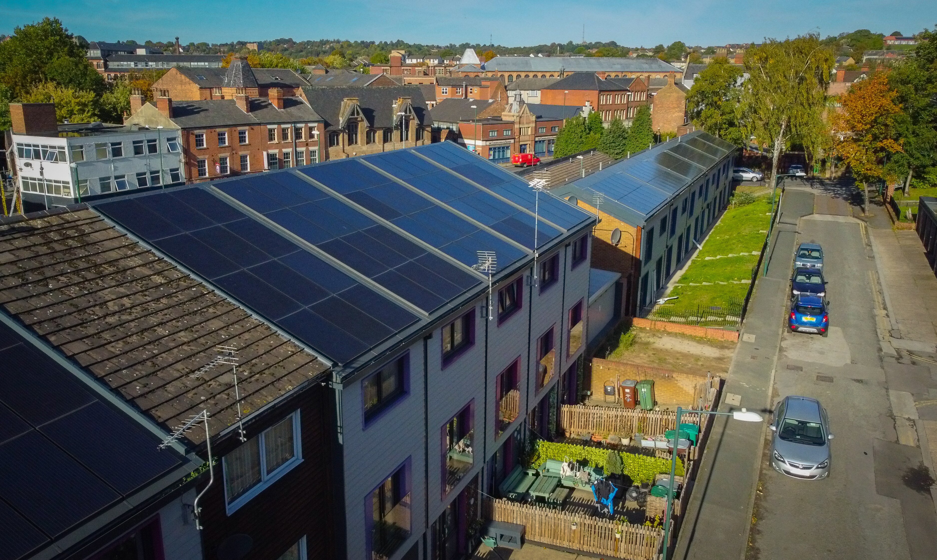In Nottingham city centre there are more signs of the transformation taking place – a sprawling electric tram network, biogas buses on the streets, and solar panels adorning historic buildings.