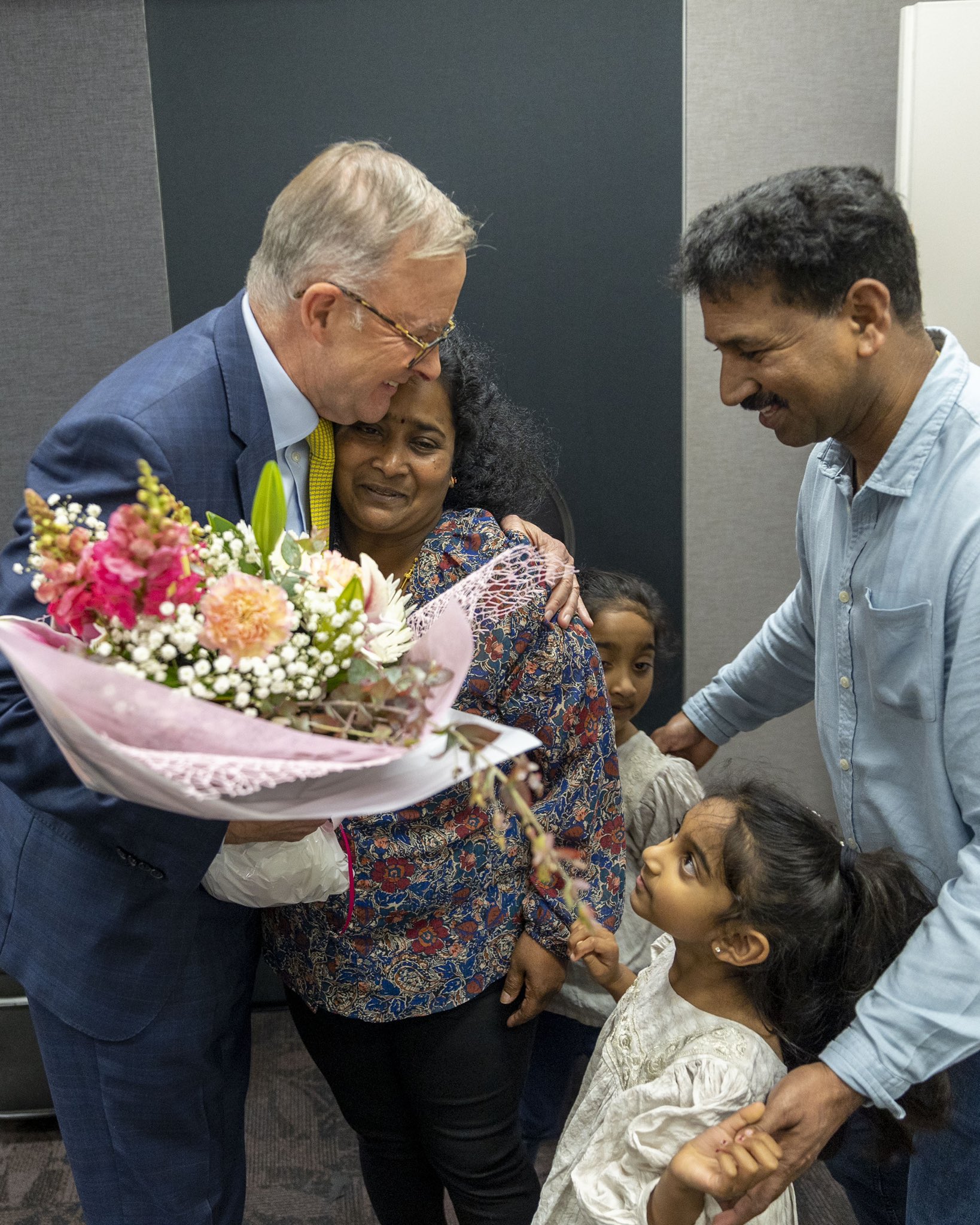 Prime Minister Anthony Albanese meets Tamil asylum seeker family after return to Biloela.