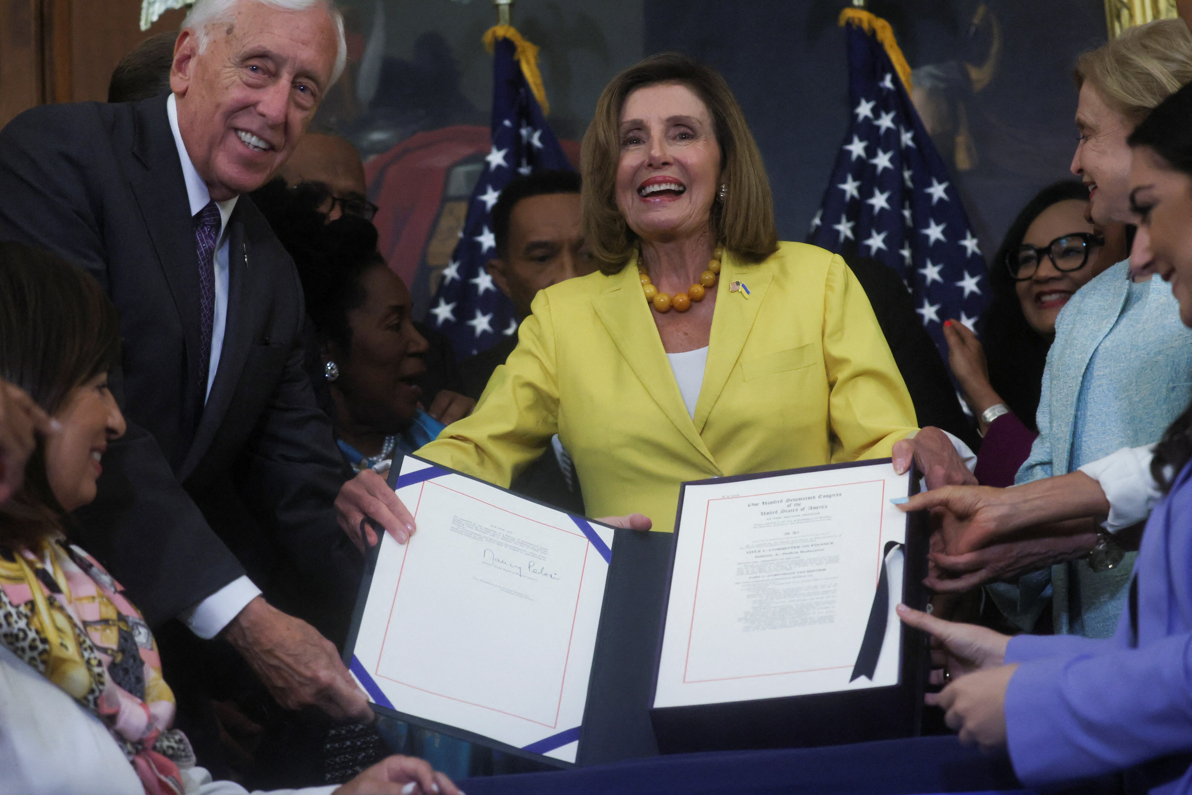 Ms Pelosi described the legislation as "a robust cost-cutting package that meets the moment, ensuring that our families thrive and that our planet survives."