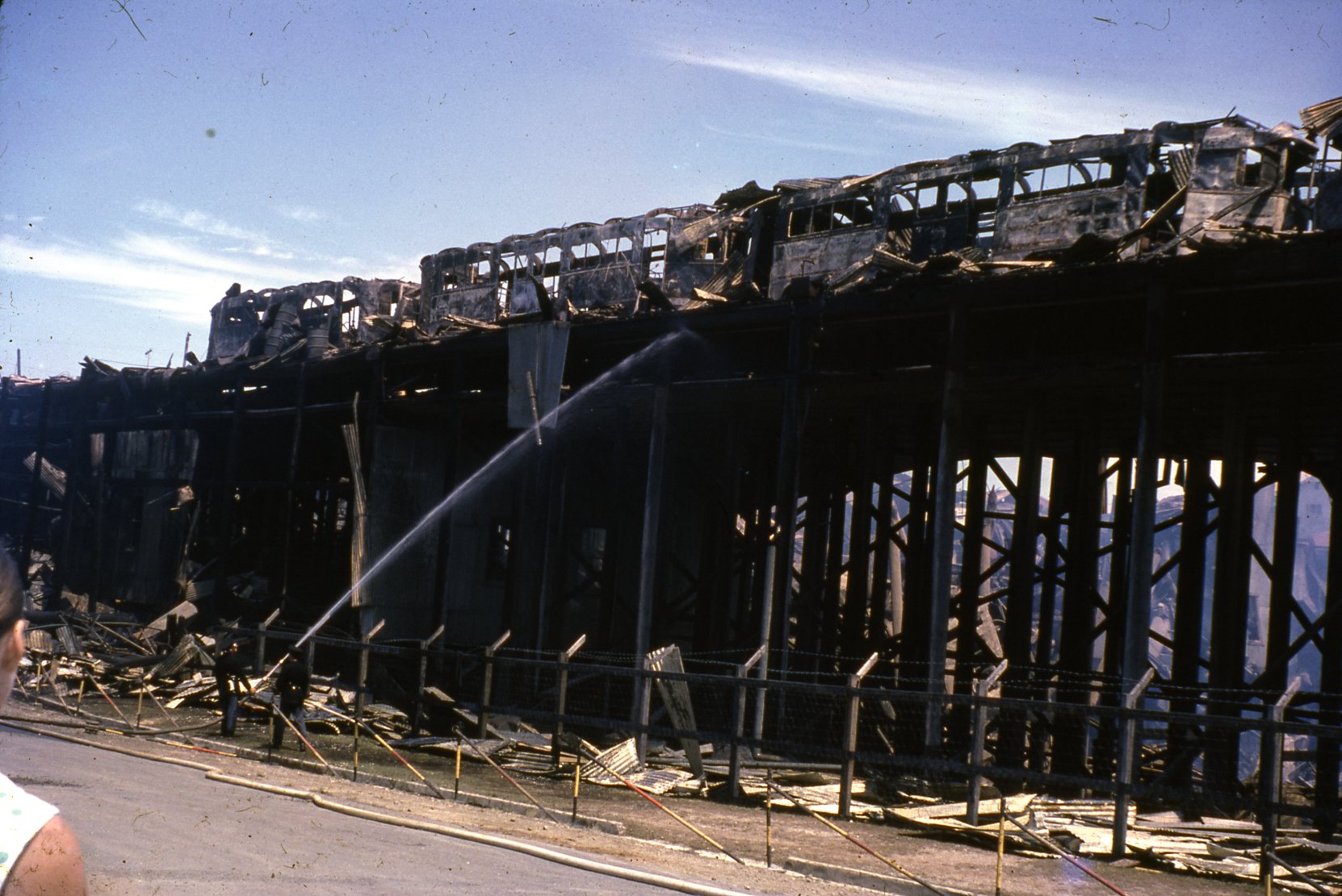 On September 28, 1962, the 47-year-old timber and steel depot rapidly caught alight from end to end, fuelled by oil and grease stored underneath the building, and smouldered for days.