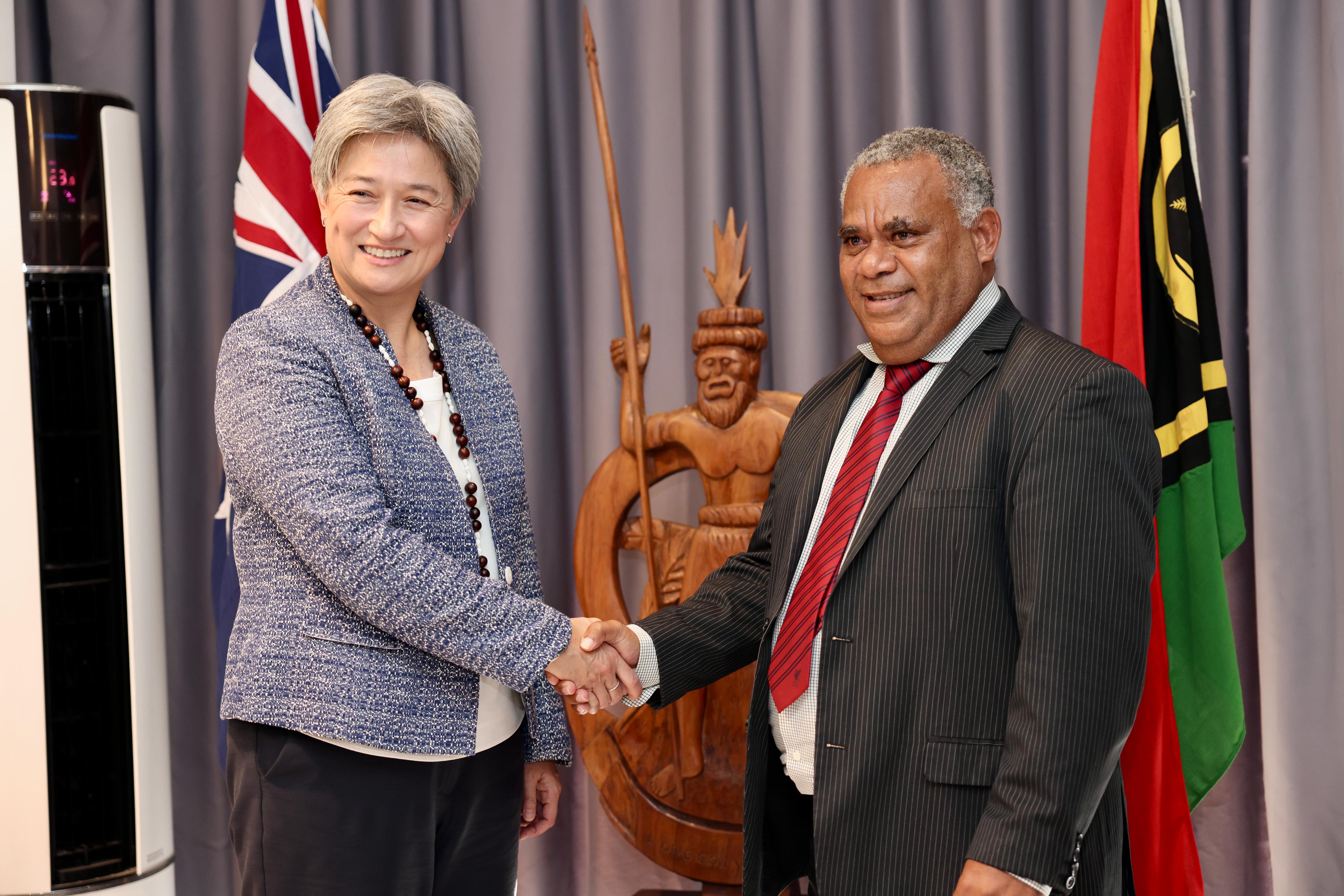 Australia will look to cement closer security ties with Vanuatu as the strategically located Pacific nation assures a visiting bi-partisan delegation led by Foreign Minister Penny Wong that it isn't discussing a similar deal with China.