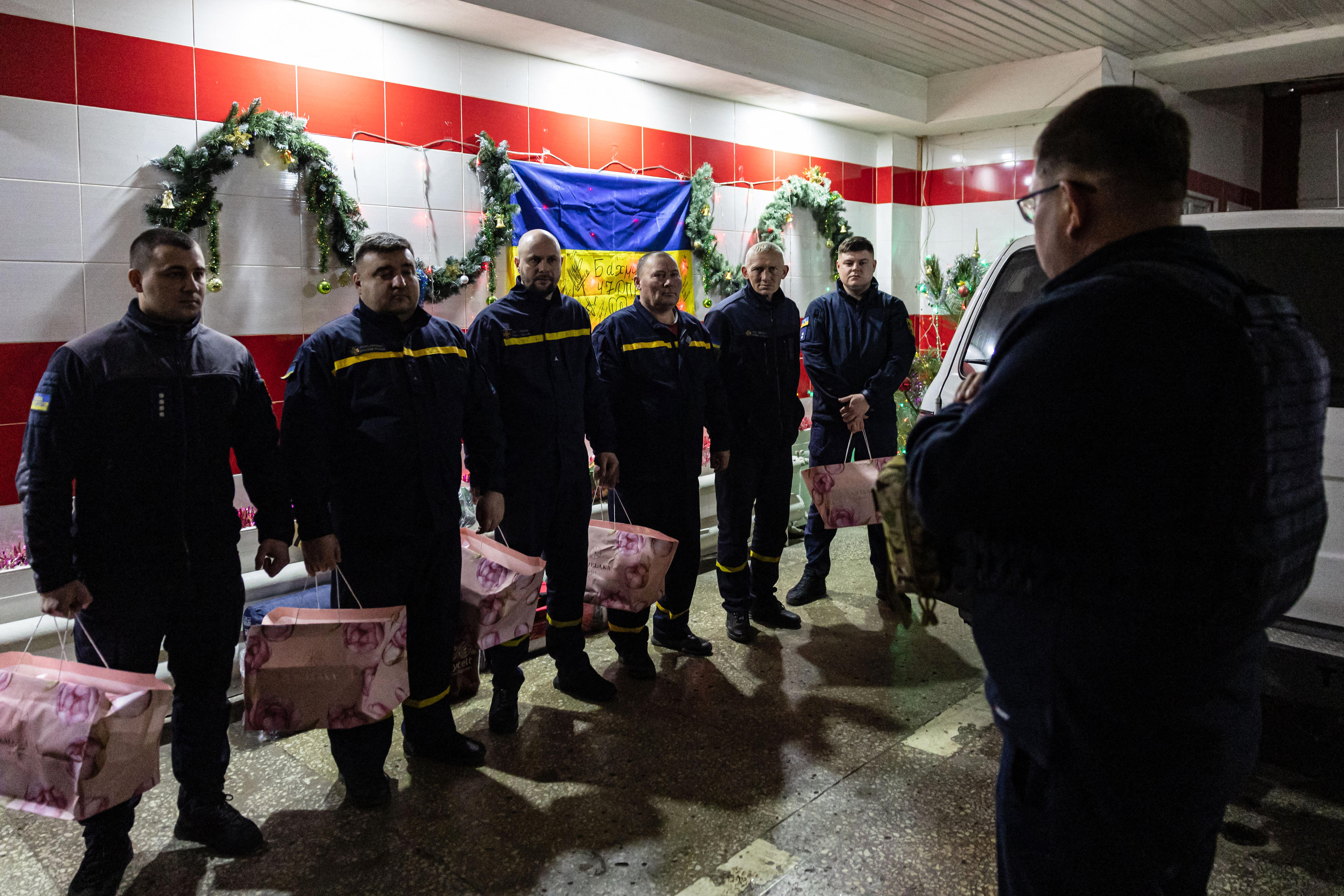 In the war-torn Ukrainian city of Bakhmut, the chief of a small group of firefighters lines up his small team in front of the national flag, and wishes them a Happy New Year.