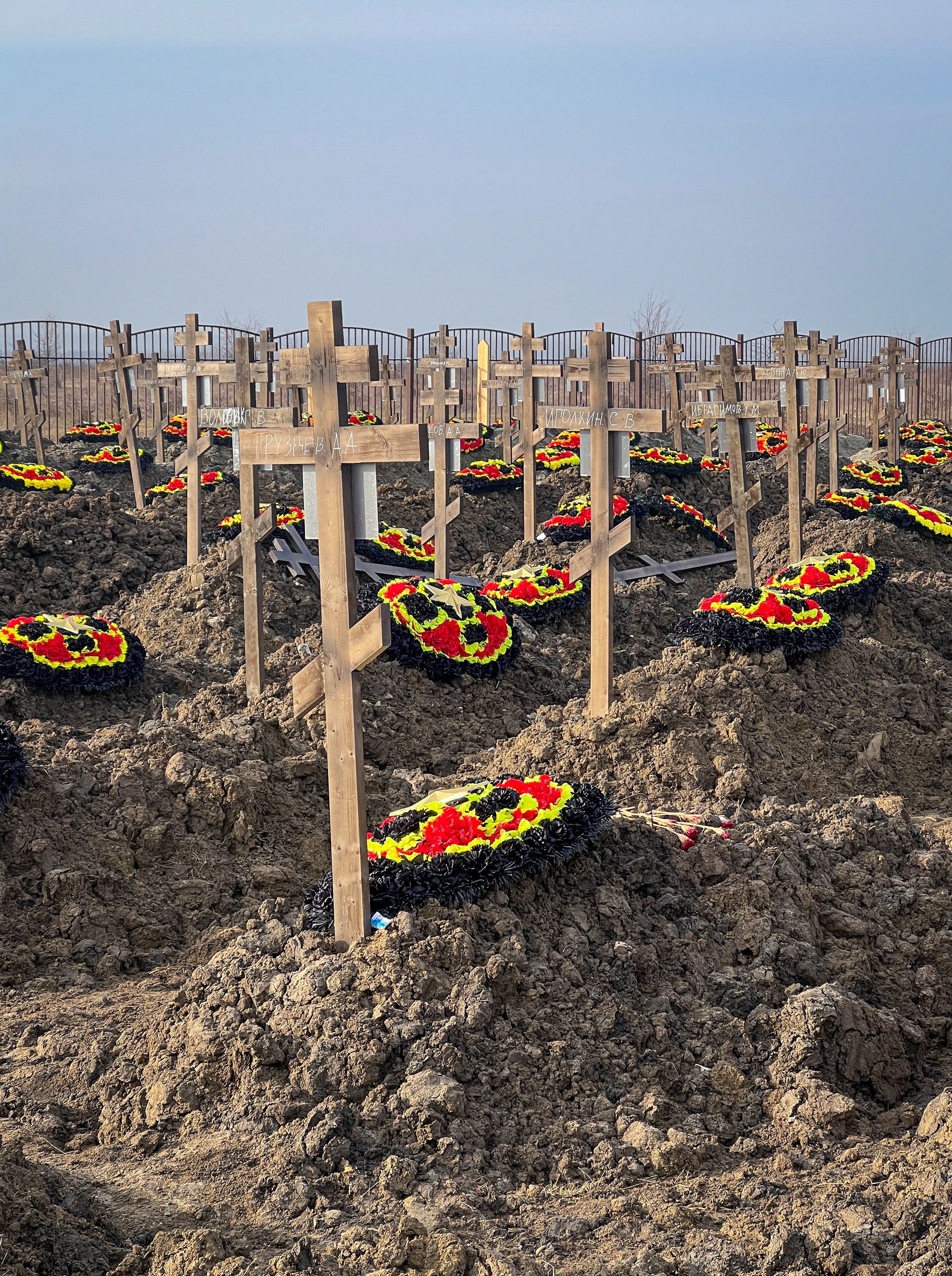 Late last summer, a plot of land on the edge of a small farming community in southern Russia began to fill with scores of newly dug graves of fighters killed in Ukraine.