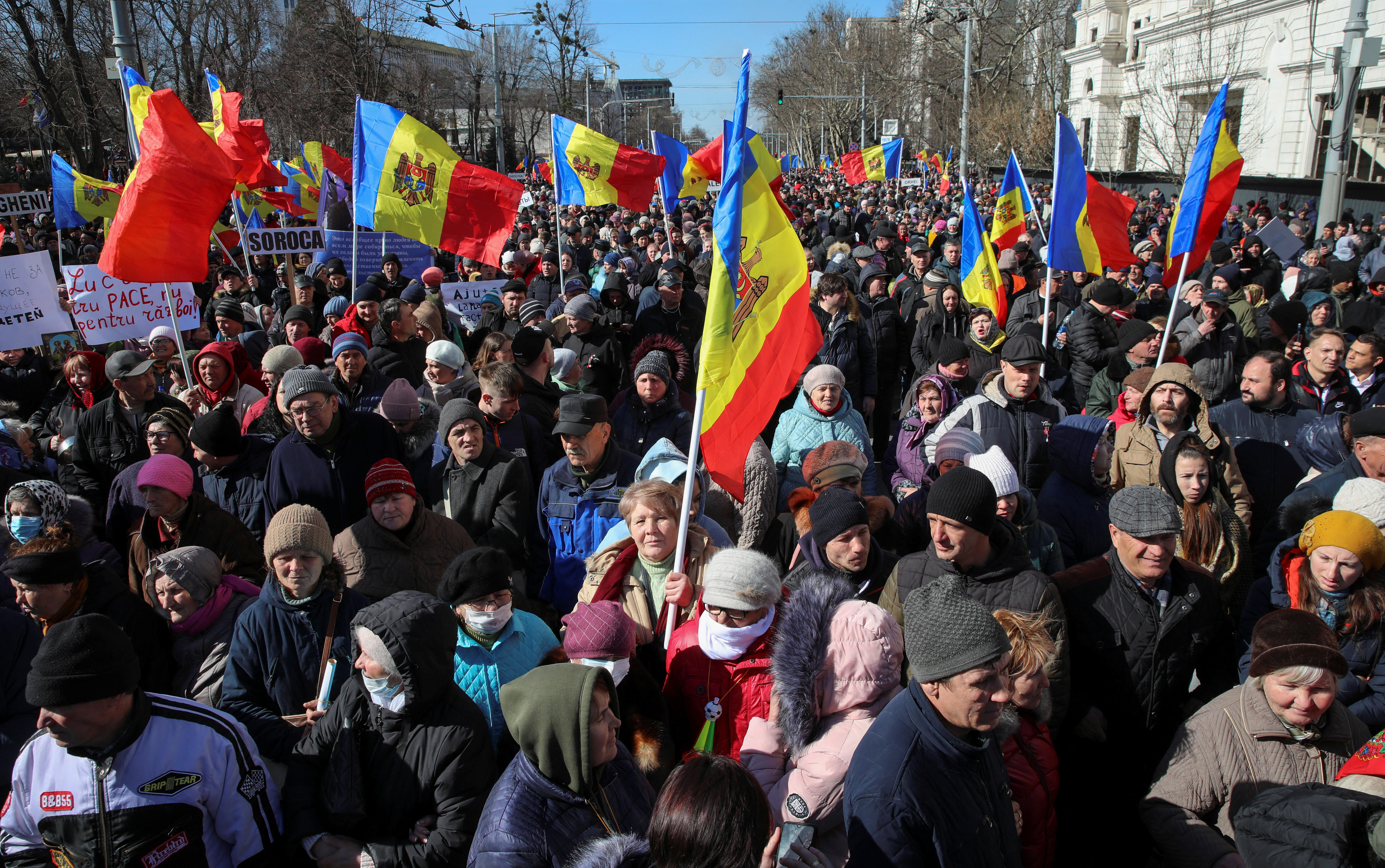 The demonstrators are demanding that the government fully cover the costs of winter energy bills and to "not involve the country in war." They have repeatedly called for President Maia Sandu to step down.