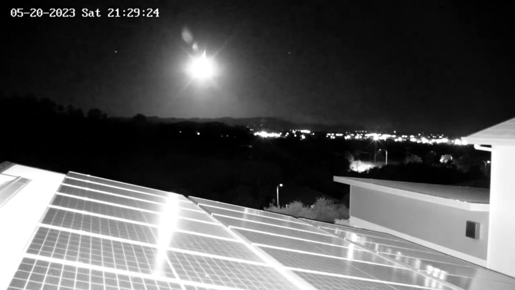 A security camera on the rooftop captured the ball of light which disappeared into the horizon within 10 seconds.