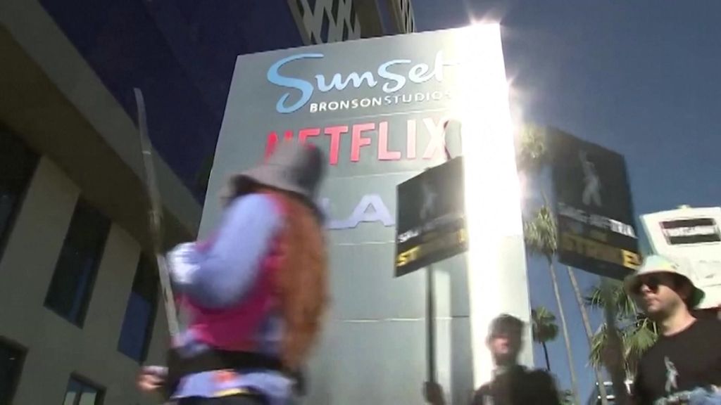 Hundreds of strikers marched with placards at the Netflix building on Los Angeles' famed Sunset Boulevard, as well as at Disney, Paramount, Warner and Amazon premises, with passing drivers honking their horns in support.