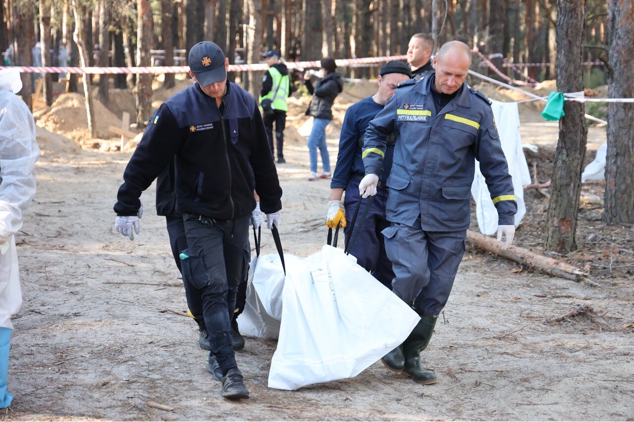 In this pine forest on Izium's outskirts, people watched as the disfigured bodies of their relatives and neighbours, killed and tortured by the Russian president's troops, were dug up.