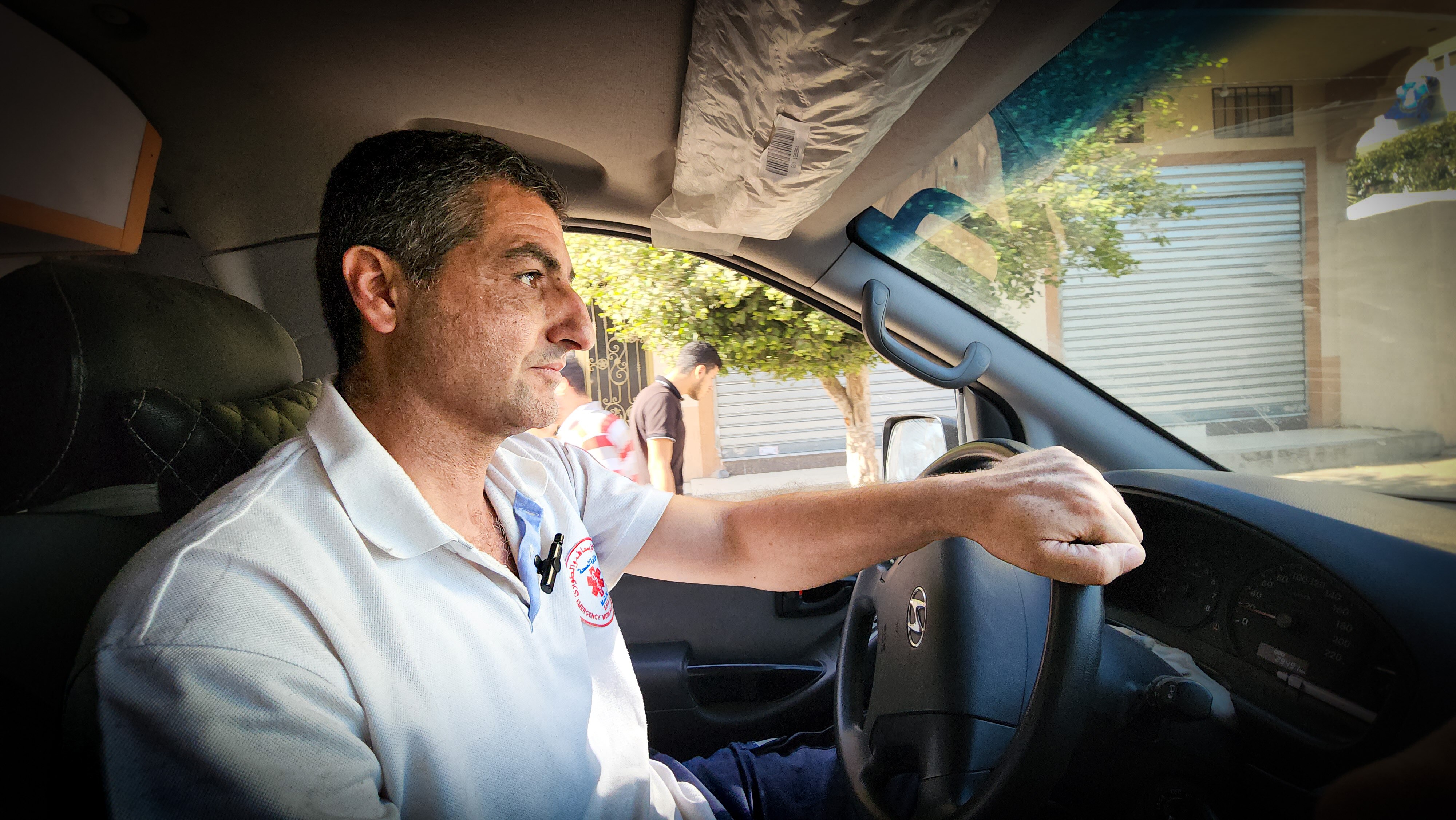 The siren starts blaring and Yasser manoeuvres the van around chunks of debris, driving towards the hospital.