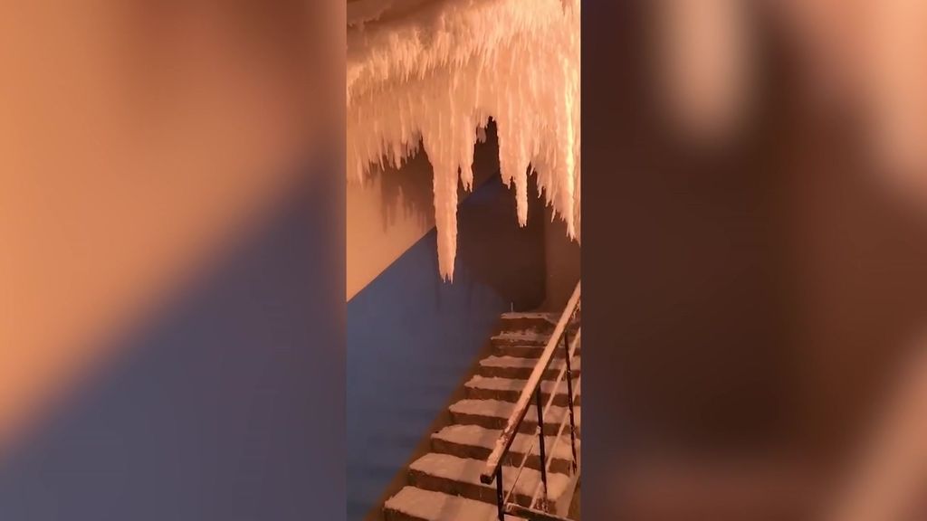 A local woman in the area posted a video of icicles coming from the interior of an apartment building, which has since gone viral.