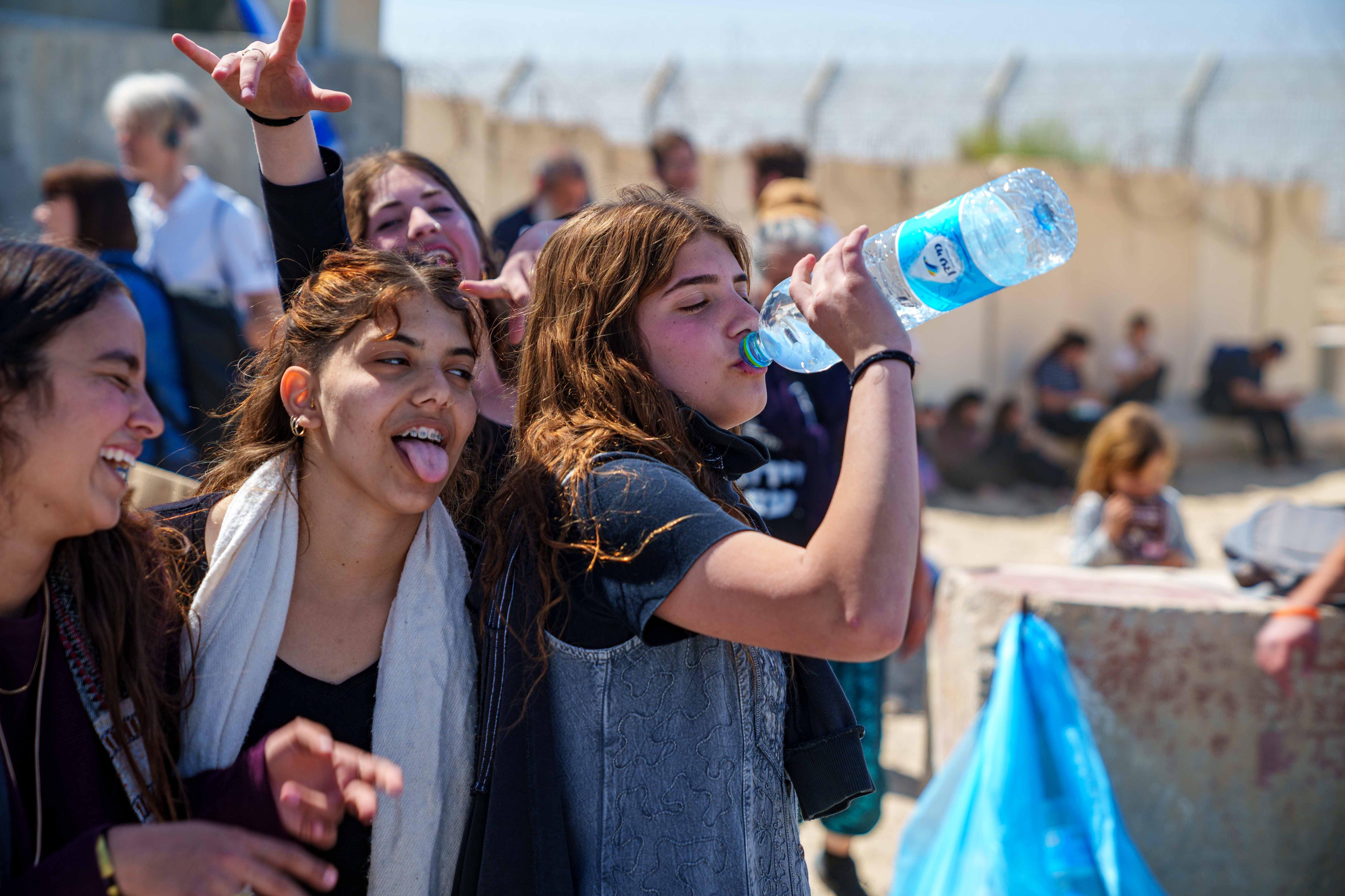 Trucks queued up on the Egyptian side, but the Israeli crossing remained closed for the day while the protesters played backgammon with the border police and shared snacks among themselves.