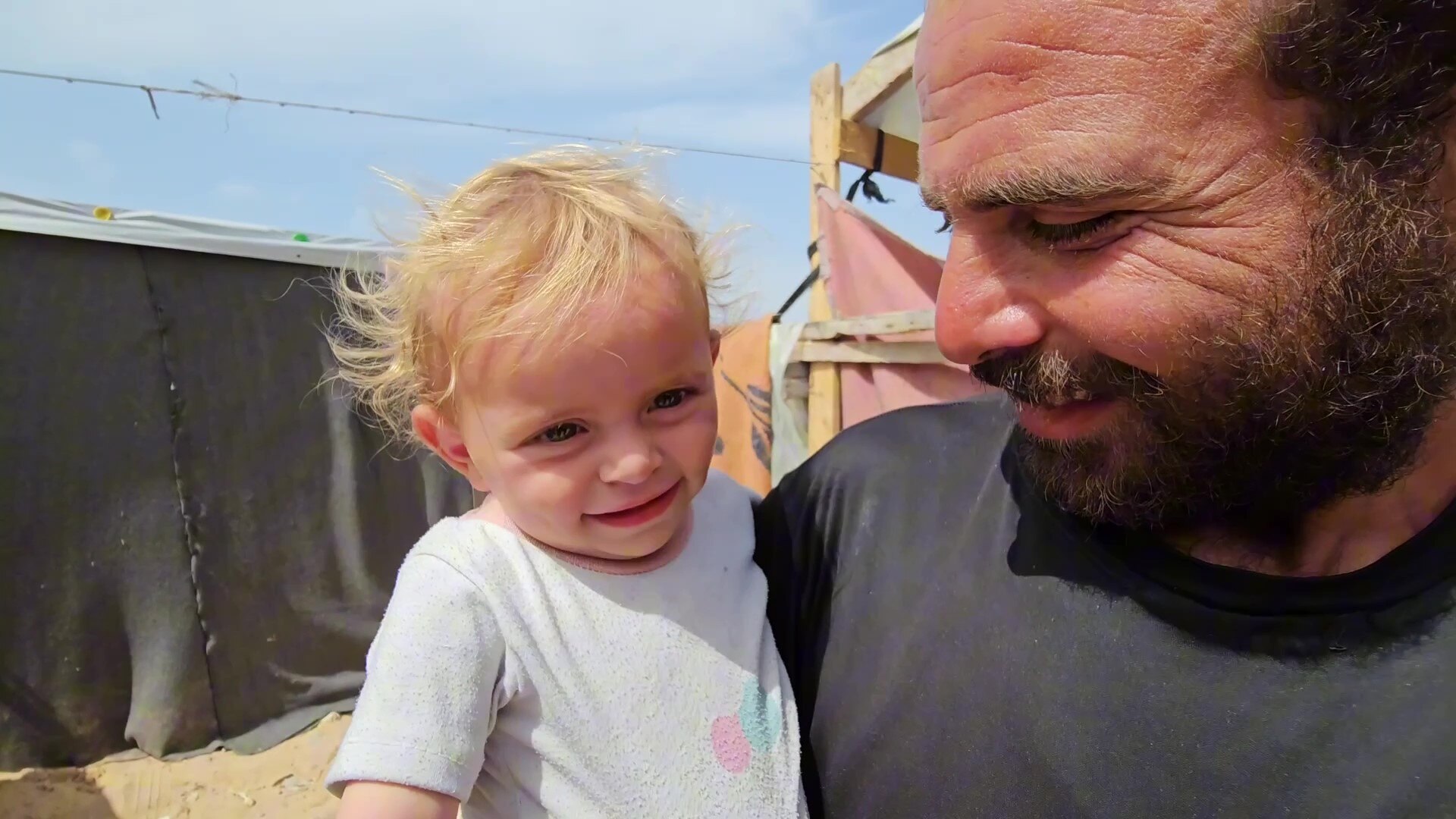 Their daughter Alaa' weeps in the corner of the tent, tears running down her face as they mention her young daughter Haya died during the war — they say it was from malnutrition.