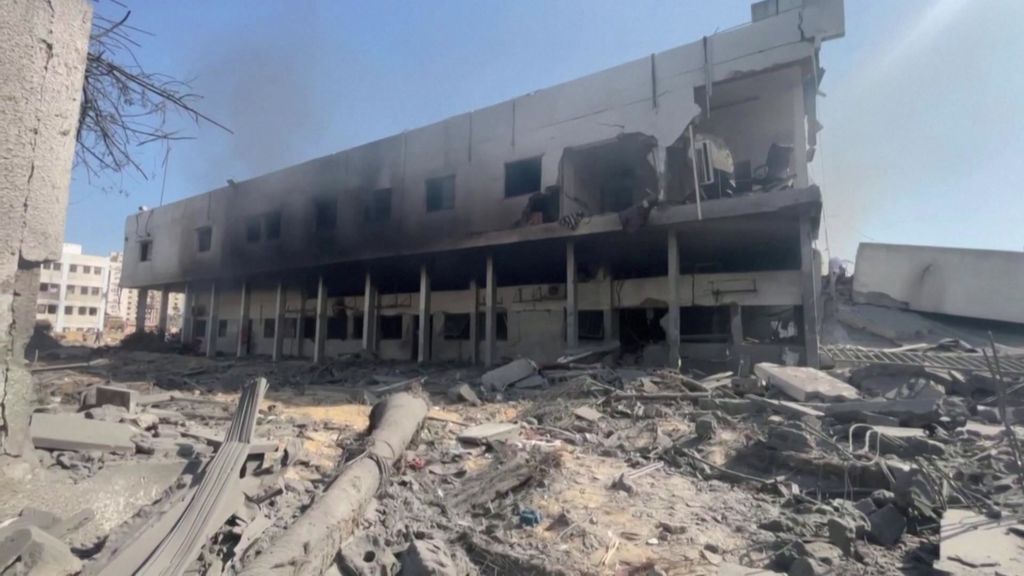 Footage shows wrecked roads and buildings, including the former UNRWA headquarters.