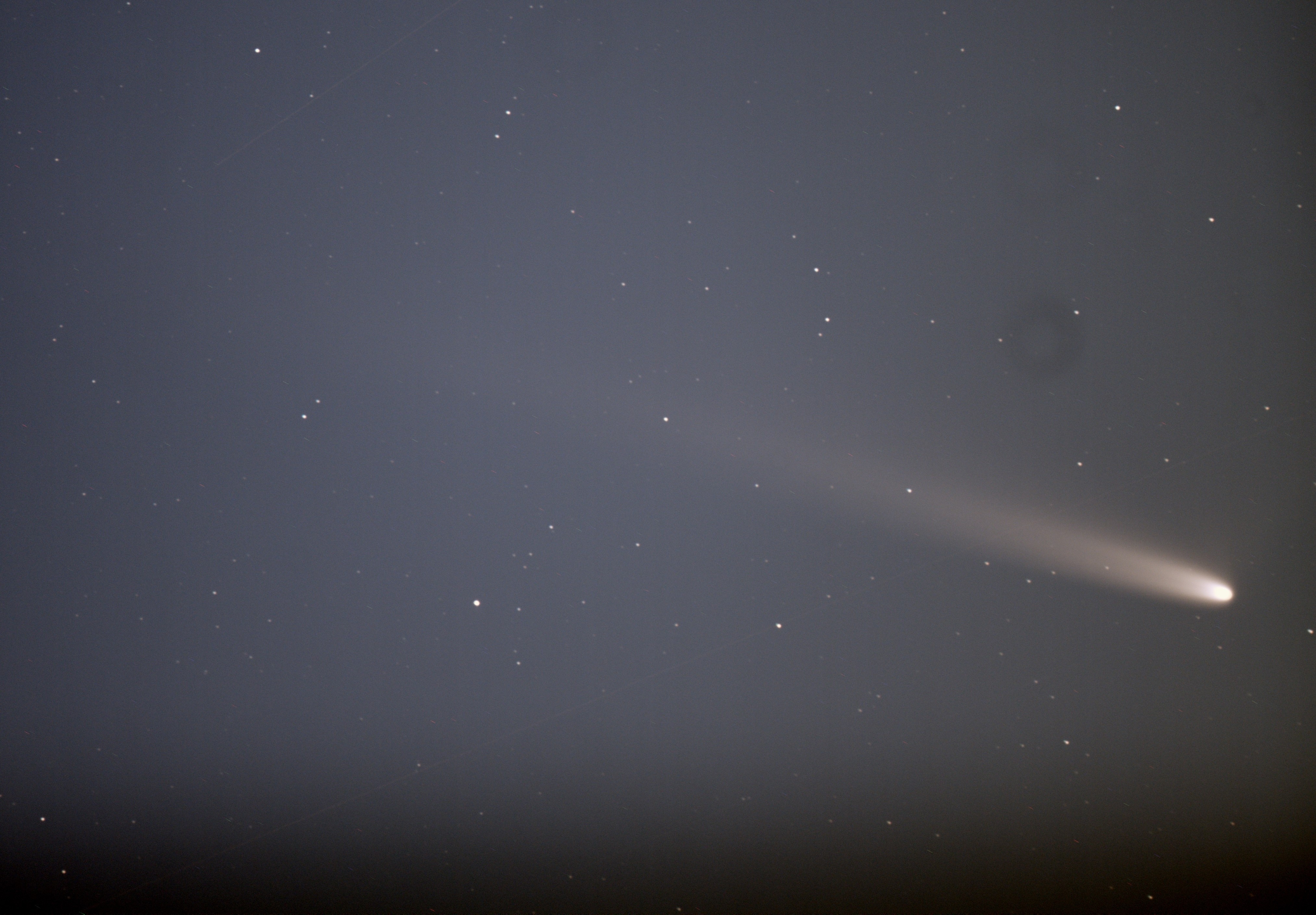 The comet can currently be seen just before sunrise with the naked eye as a small blob near the eastern horizon.