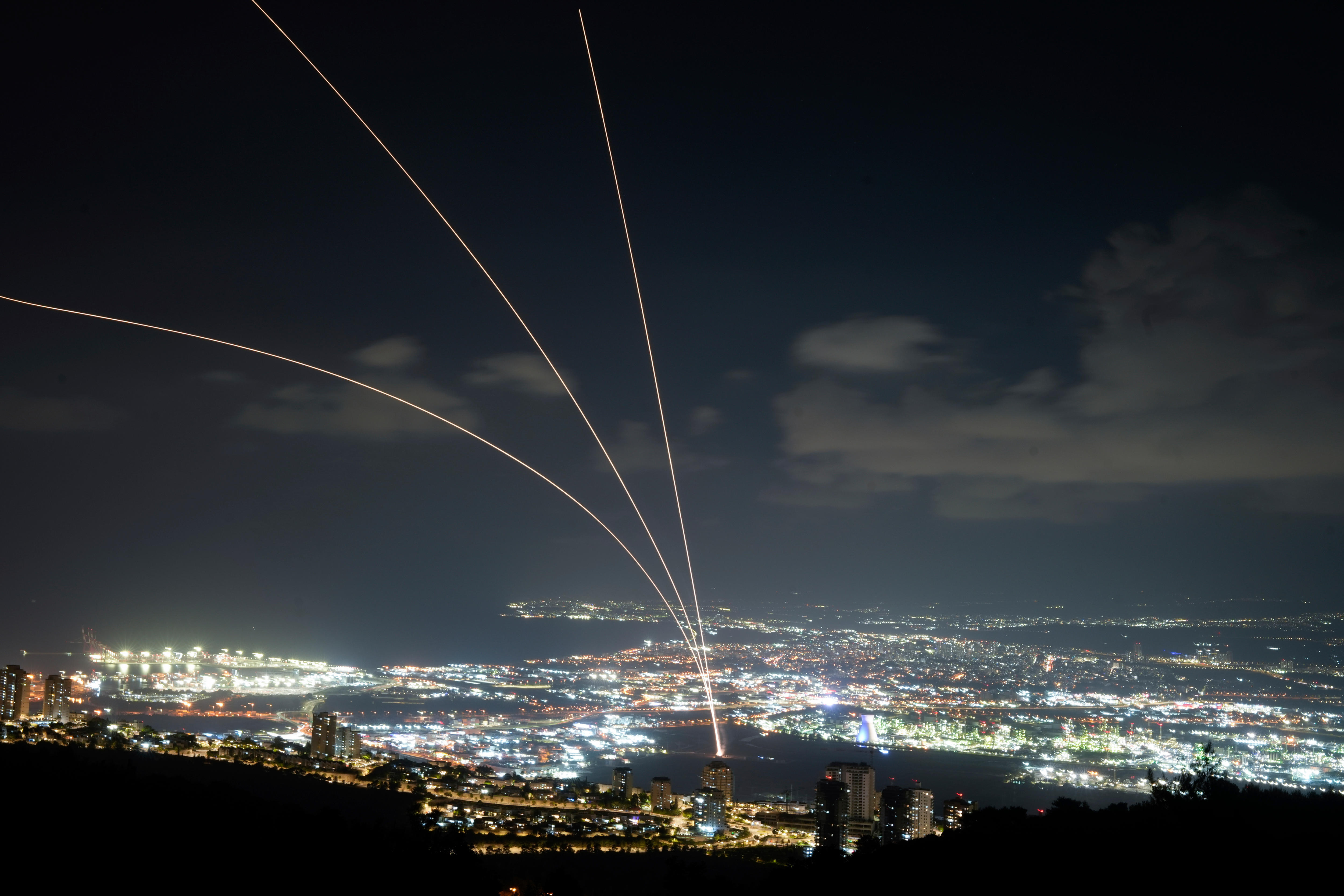 The Iron Dome intercepts missiles fired from Lebanon over Israel's northern city of Haifa.