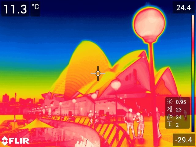 By Digby WerthmullerUNSW researchers took infrared images of Sydney Harbour to show how much radiation there is at night. (Supplied)