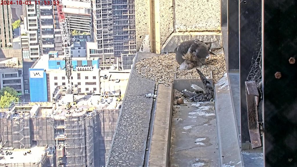It's been a big day for the much-watched pair of peregrine falcons. (Facebook: 367 Collins Falcon Watchers/Helen Matcham)