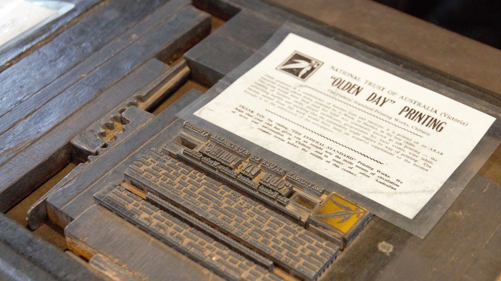 Today, the linotype makes up many pieces of equipment still in working order on display at the Federal Standard Printing Works in the small historic town of Chiltern in north-east Victoria.