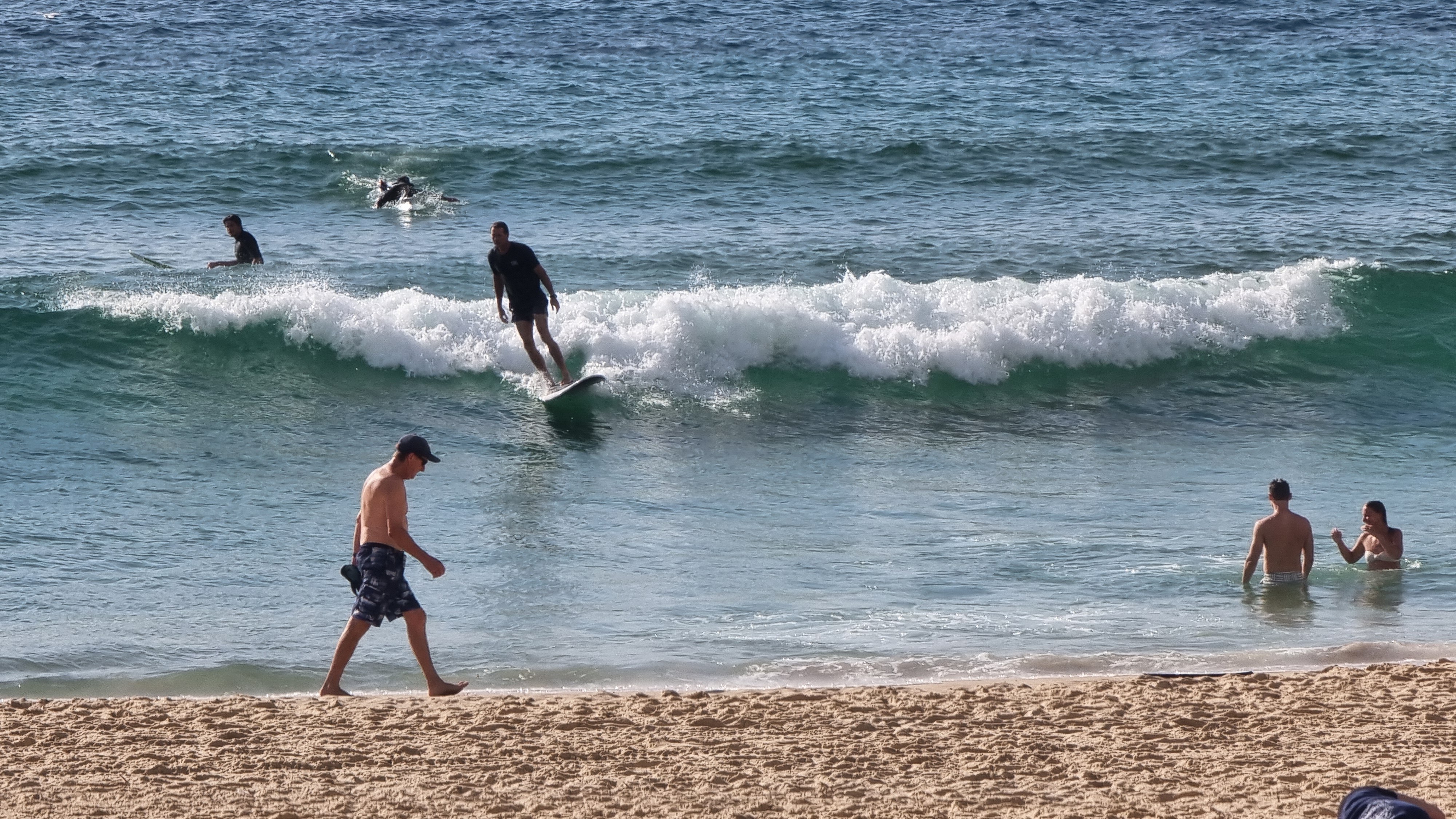 Beachgoers at Bondi spent New Year's Day cooling off as the UV Index reached 12. (ABC News: Mario Conti)