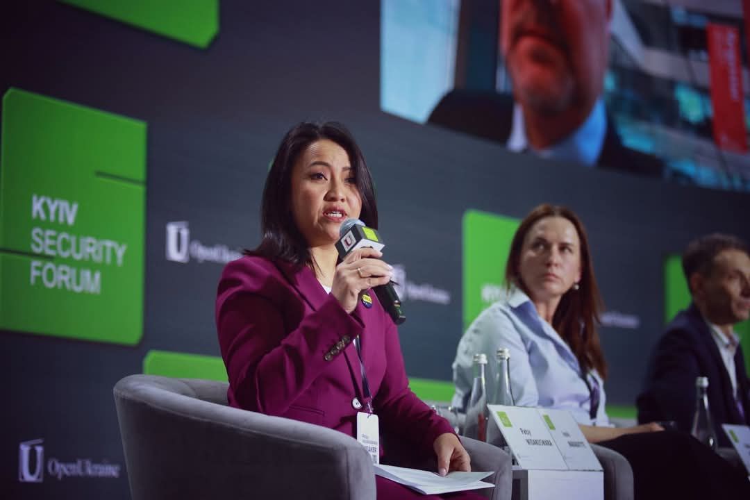 Patsy Widakuswara speaks on panel discussing whether the free world is "abandoning its voice". (Supplied: Patsy Widakuswara)