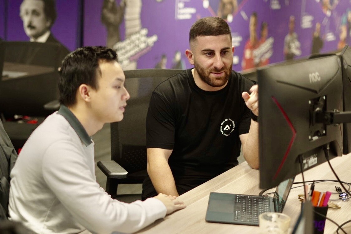 Julian Fayed (right) says advances in artificial intelligence have increased the productivity of his business. (ABC News: John Gunn)