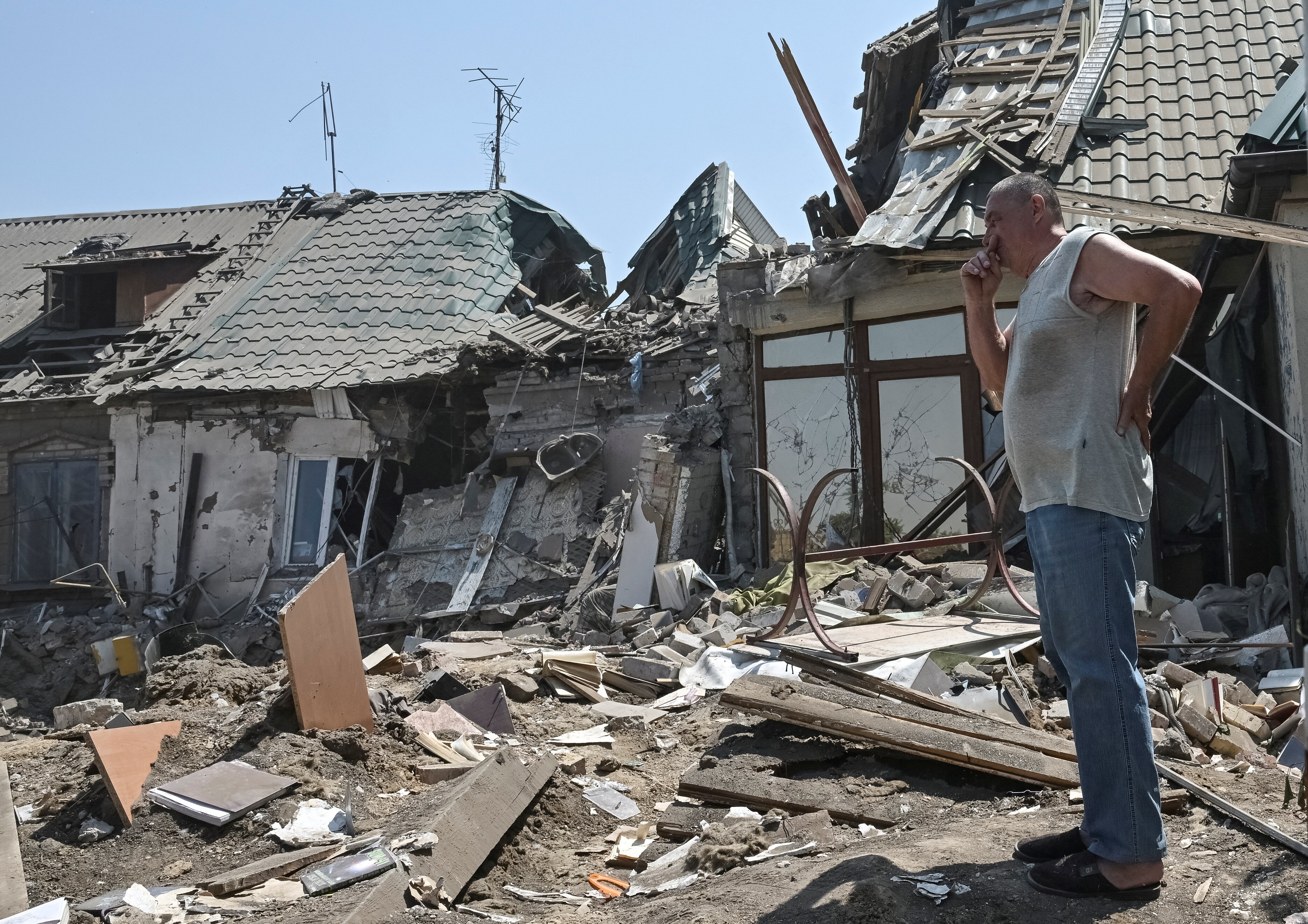 A resident stands at the site of the Russian air strike in Zaporizhzhia, Ukraine. (Reuters: Stringer)