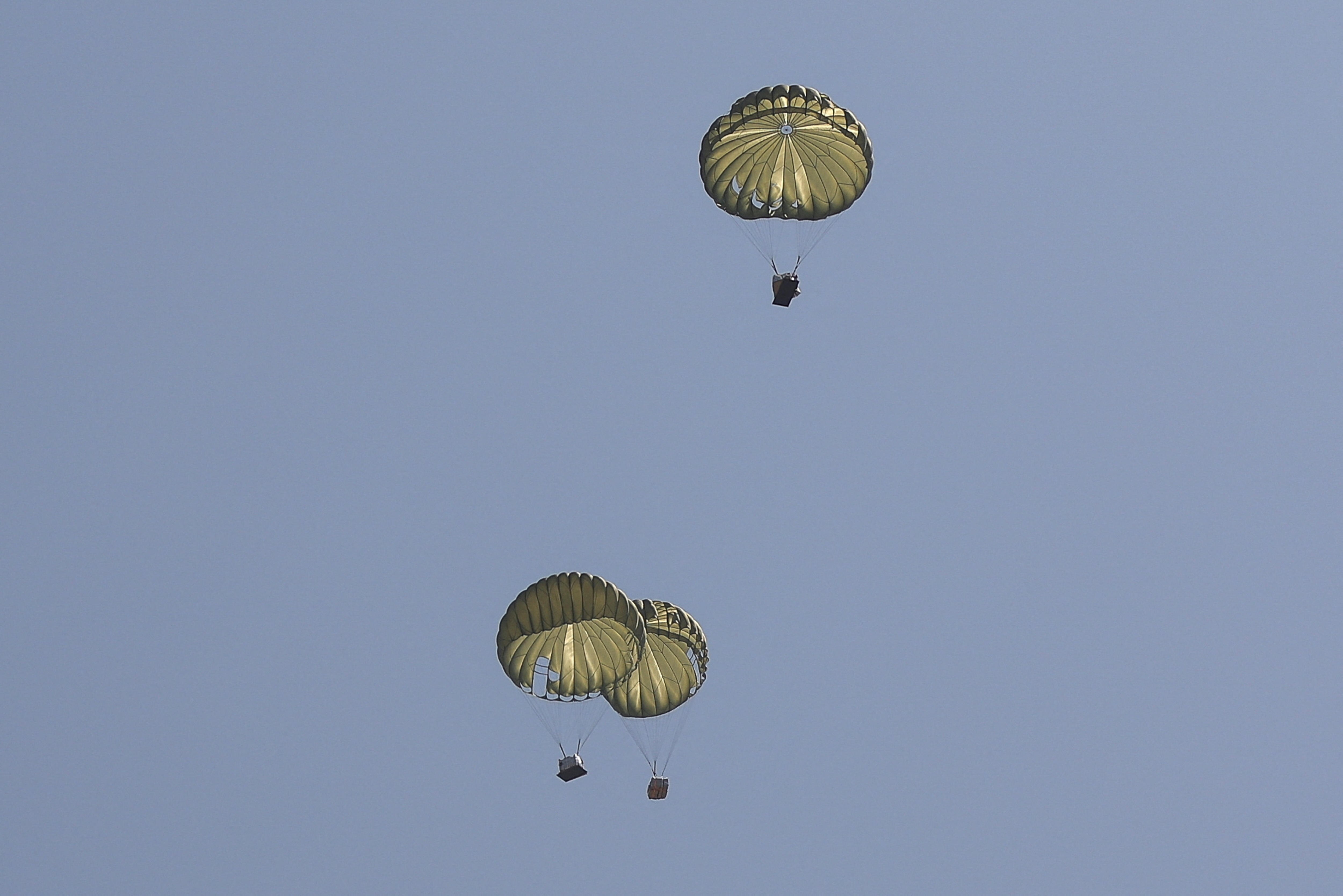 Footage from the scene showed several pallets parachuting down from the sky and hitting the ground with significant force.