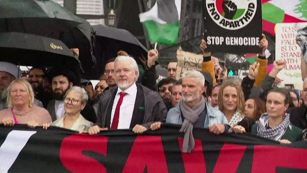 Julian Assange and Craig Foster at the Sydney Harbour Bridge march.