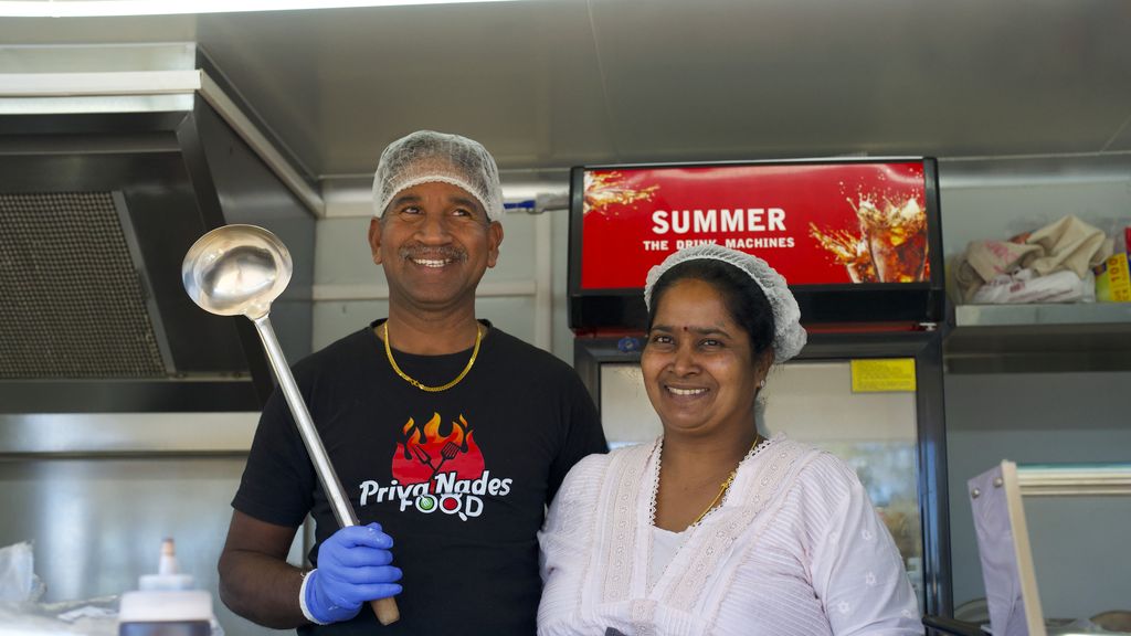 The tourist sees the name Priya Nades Kitchen on the side of the food van as he passes through the Queensland town of Biloela, stops the car and turns back.
