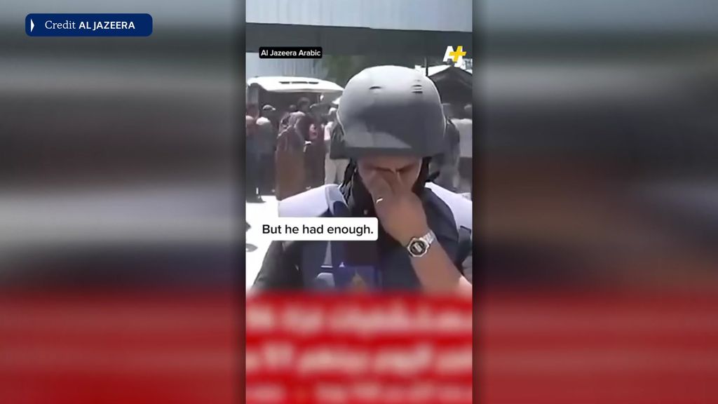 A journalist breaks down after a woman collapses from starvation in Gaza.