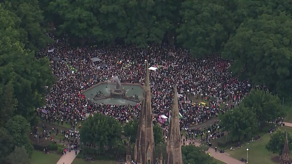 People swarmed the streets of the Melbourne CBD, with the crowd estimated at 100,000 people, according to organisers.