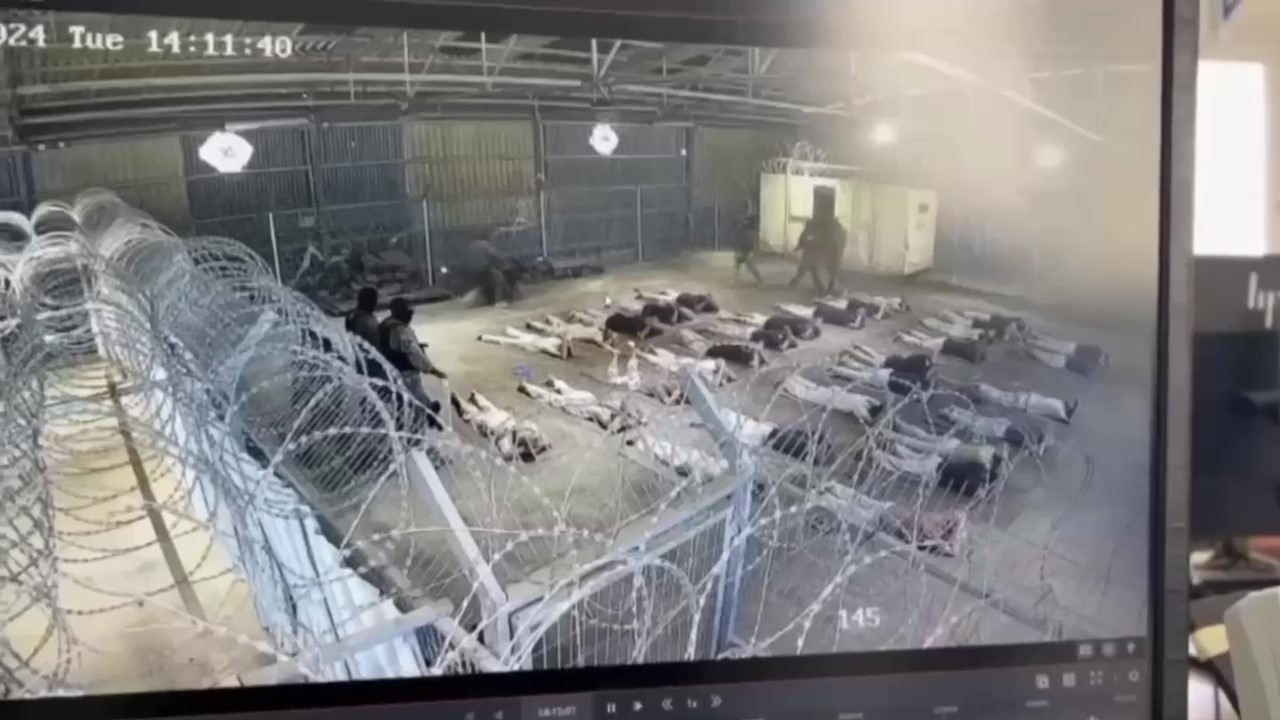 Israeli TV aired security camera footage it said was from Sde Teiman. (Supplied: Channel 12)