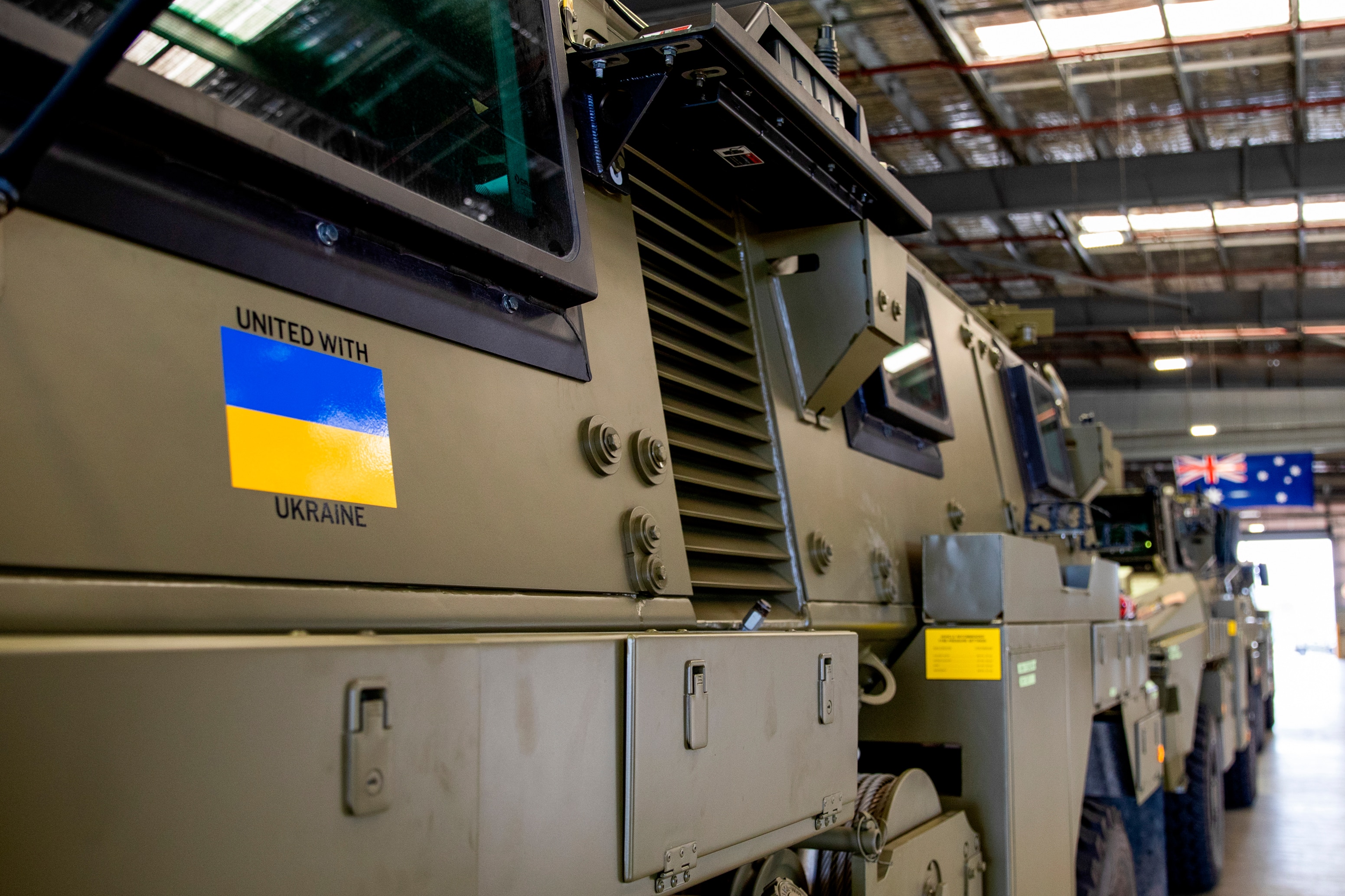 The additional funding for Ukraine takes Australian support to $1.7 billion, including Bushmaster vehicles earlier in the war. (AP: Royal Australian Air Force)