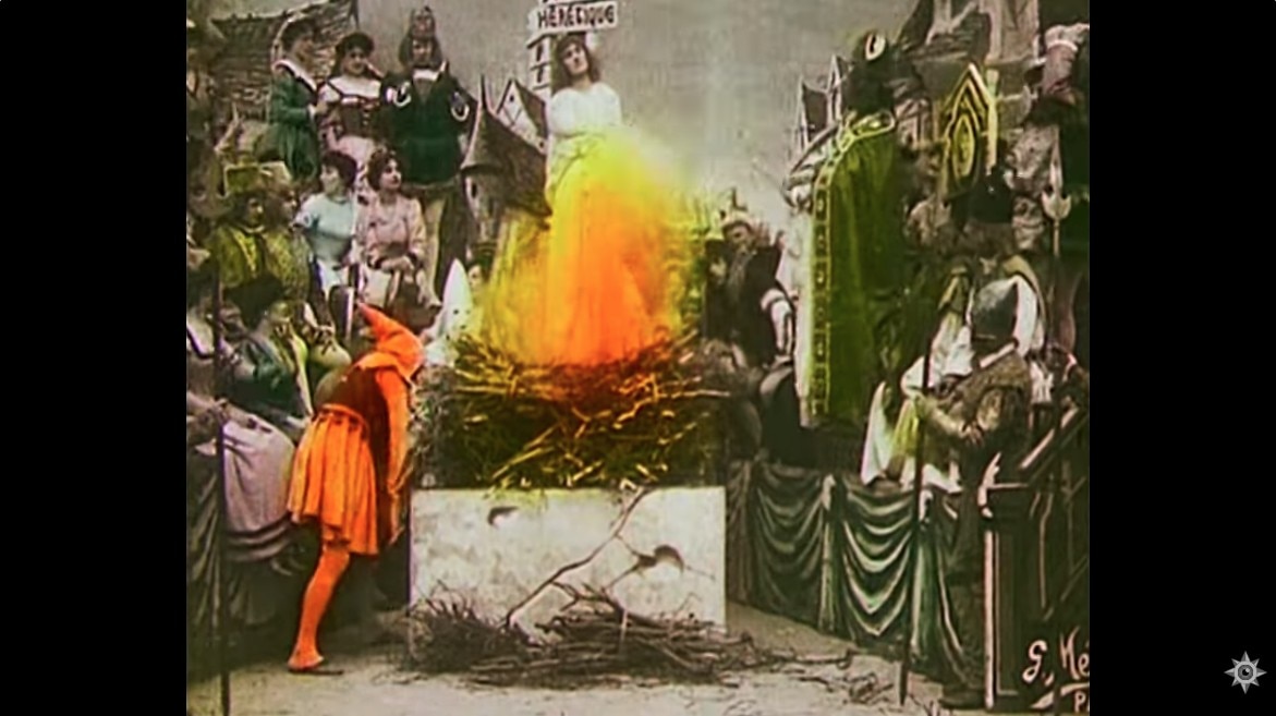 A scene in Georges Méliès's Joan of Arc (1900) illustrates the effects of hand colouring films in the 1900s. (Supplied: Creative Commons Attribution)