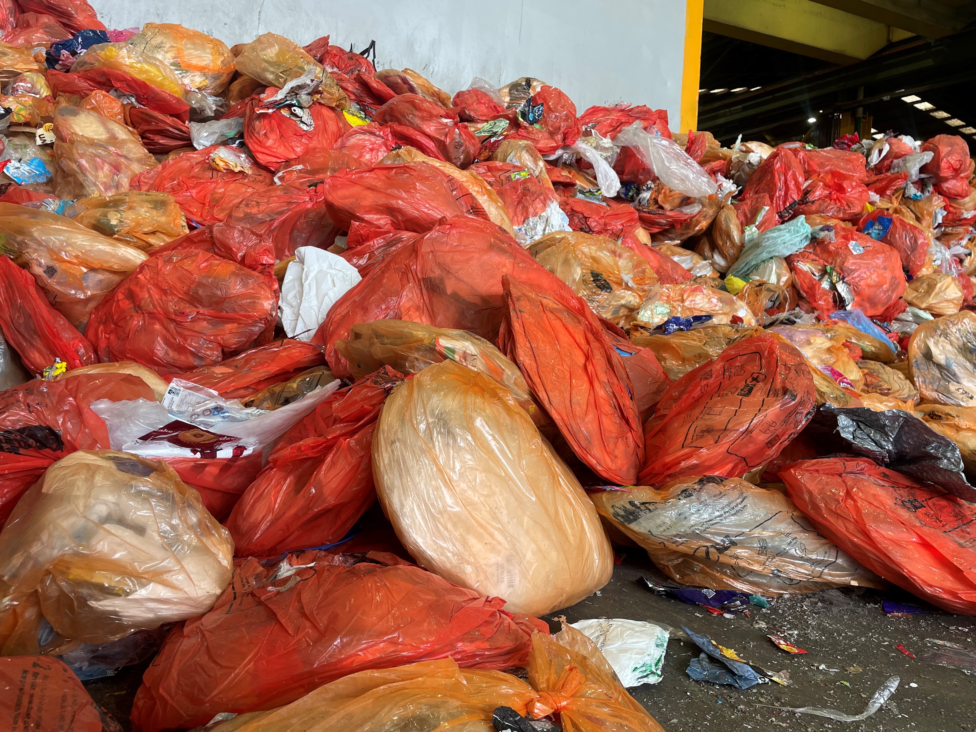 Bags of waste on the factory receiving floor. (ABC News: Emma Siossian)
