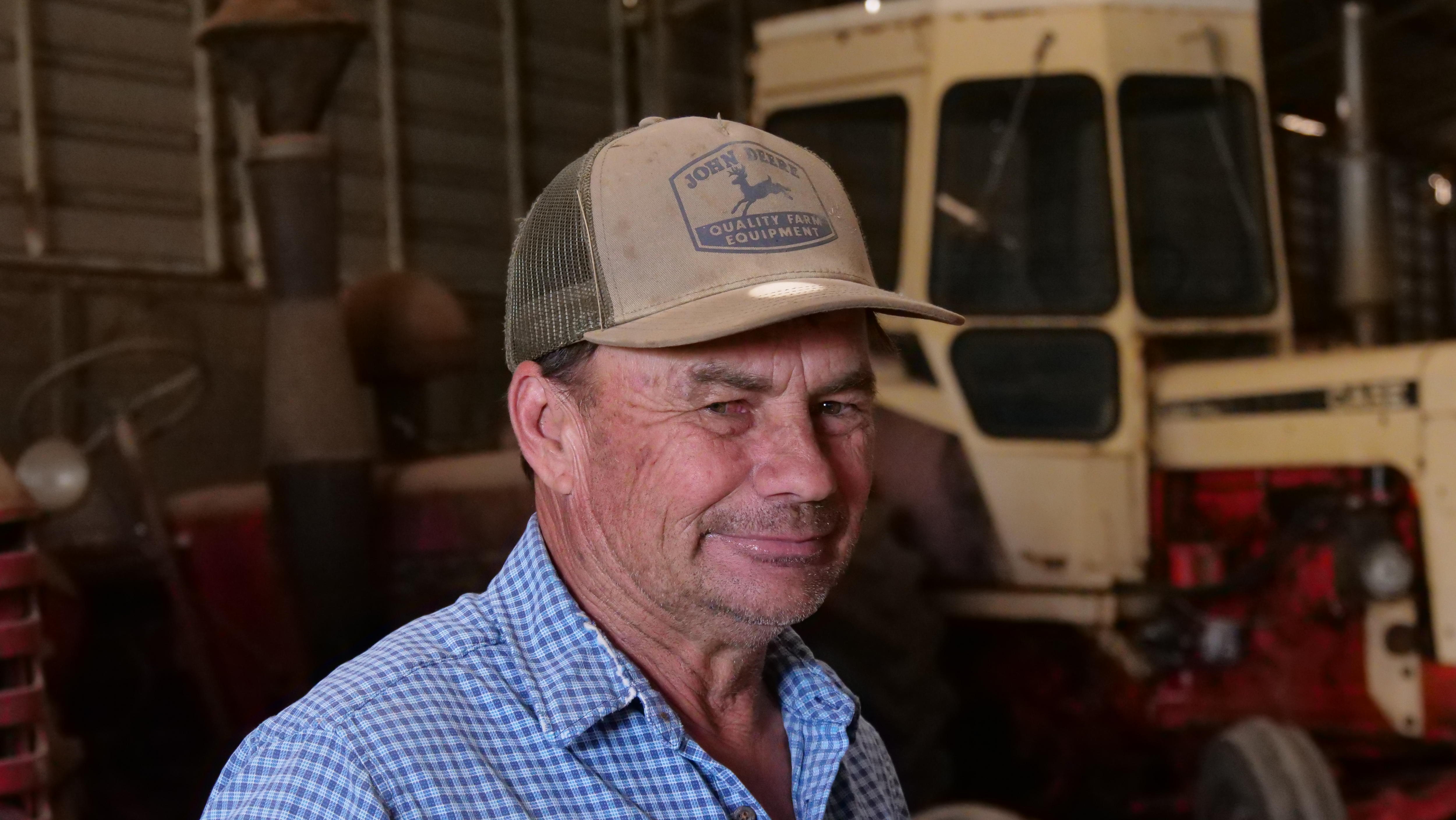 Leigh Baker has a passion for collecting and restoring vintage farm equipment. (ABC North & West: Isabella Kelly)